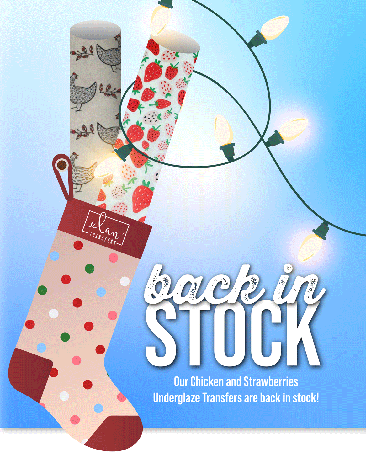 Elan Transfers offers a vibrant collection of high-quality, artist-designed underglaze decals created specifically for today’s ceramic artists. After years of using custom decal designs on her own work, artist Leigh Anne Thompson, saw that there was a need for a fresh approach to a timeless art of underglaze transfers.